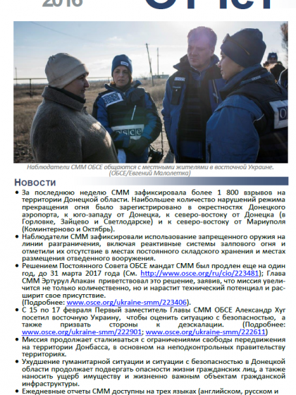 В отчете представлен обзор Специальной Мониторинговой Миссии ОБСЕ (СММ), последние события и новости по состоянию на 24 февраля 2016 г.
