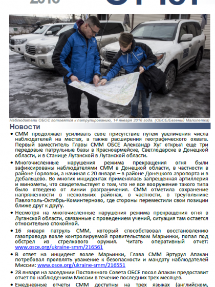 В отчете представлен обзор Специальной Мониторинговой Миссии ОБСЕ (СММ), последние события и новости по состоянию на 27 января 2016 г.