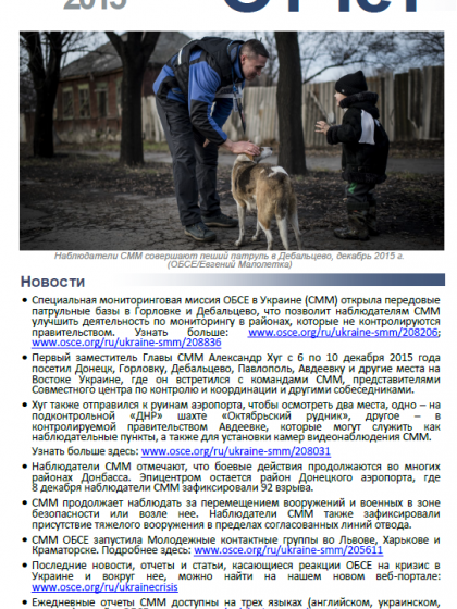 В отчете представлен обзор Специальной Мониторинговой Миссии ОБСЕ (СММ), последние события и новости по состоянию на 16 декабря 2015 г.