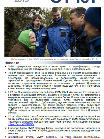 В отчете представлен обзор Специальной Мониторинговой Миссии ОБСЕ (СММ), последние события и новости по состоянию на 4 ноября 2015 г.