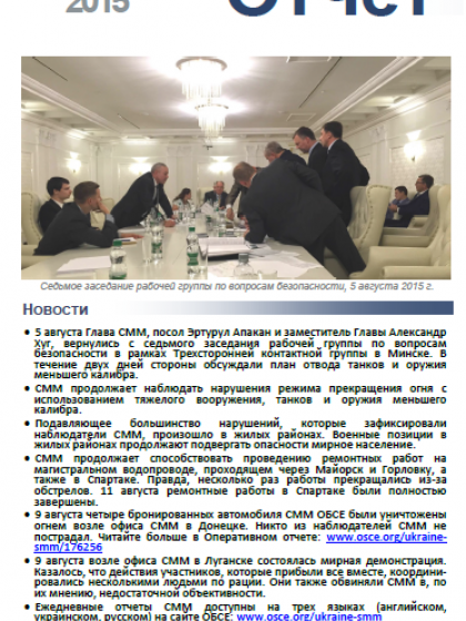 В отчете представлен обзор Специальной Мониторинговой Миссии (СММ) ОБСЕ, последние события и новости по состоянию на 12 августа 2015.
