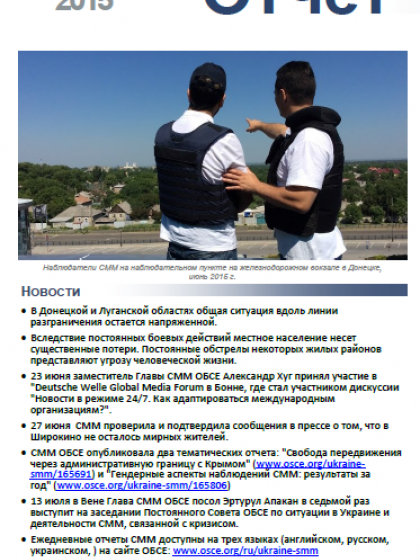 В отчете представлен обзор Специальной Мониторинговой Миссии (СММ) ОБСЕ, последние события и новости по состоянию на 1 июля 2015.