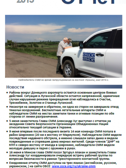 В отчете представлен обзор Специальной Мониторинговой Миссии (СММ) ОБСЕ, последние события и новости по состоянию на 17 июня 2015.