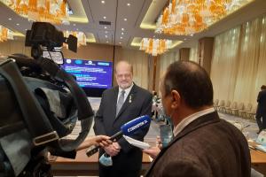 Джон МакГрегор, Координатор проектов ОБСЕ в Узбекистане дал интервью национальному телеканалу на международной конференции по обсуждению Послания Президента Республики Узбекистан, Ташкент, 5 февраля 2021 года.