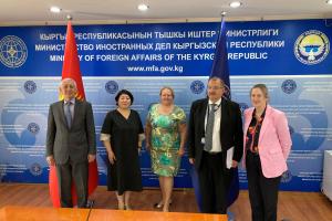 Директор Центра ОБСЕ по предотвращению конфликтов и заместитель руководителя Секретариата ОБСЕ Туула Юрьёля встретилась с заместителем министра иностранных дел Кыргызской Республики Динарой Кемеловой в ходе ее двухдневного визита в Бишкек. 22 июля 2022 г.