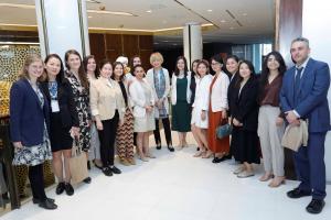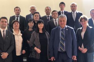 Майя Битадзе, председатель комитета парламента Грузии (справа) с делегацией Таджикистана, Тбилиси, 11 мая 2022 года