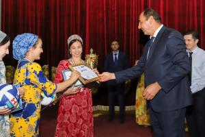 Представитель Агентства по контролю за наркотиками во время награждения спортсменок, город Бохтар, 20 июня 2022