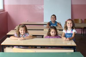 Школьники многонациональной начальной школы муниципалитета Сарай вернулись в класс, отремонтированный в рамках проекта ОБСЕ, 2 сентября 2013 года.