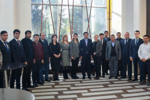 Представители таможенной службы Таджикистана и Центра химической, биологической, радиологической и ядерной экспертизы на четырехдневном учебном семинаре по стратегическому контролю торговли в Таджикистане, Душанбе, 20 декабря 2021 года.