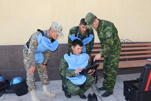 Участники регионального курса по обезвреживанию взрывоопасных предметов (уровень 2) во время практических занятий, Чимтеппа, Таджикистан, 14 октября 2021 года.