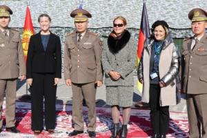 Участники церемонии в честь вывоза последней партии меланжа, компонента ракетного топлива, из района Новопавловки и Чуйской долины. Бишкек, Кыргызстан, 2 ноября 2021 года. (Программный офис ОБСЕ в Бишкеке)