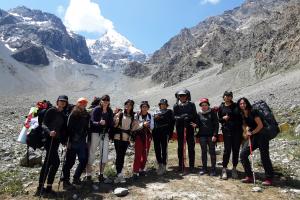 Участники тренинга на высоте 3200 метров, горный массив Газнок, Таджикистан, 30 июня 2021 года.