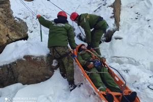 Спасатели из Комитета по чрезвычайным ситуациям и гражданской обороне Таджикистана во время практических занятий в Варзобском районе, 25 января 2021 года.