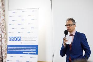 Глава миссии Клаус Нойкирх приветствует участников и призывает их активно участвовать в дискуссиях, Вадул-луй-Вода, Молдова, 26 сентября 2019 года.