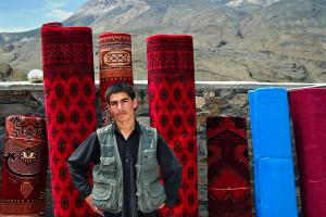 Афганский торговец коврами в Ишкашиме, Таджикистан, 6 апреля 2012 г.