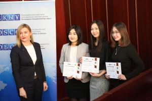 Изабела Сильвия Хартманн, Заведующая отделом человеческого измерения Офиса программ ОБСЕ в Астане вместе с победителями студенческого конкурса на Международном молодежном юридическом форуме, Астана, 14 декабря 2017.