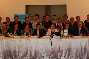 Участники однодневного круглого стола по вопросам создания центрального координационного органа по гендерным вопросам, Душанбе, 31 октября 2017 года.