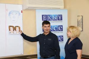 Участник совершенствует навыки по определению лицевых характеристик в ходе практического упражнения на тренинге по профилированию рисков в пограничных пунктах пропуска, Актобе, 29 июня 2017 г.