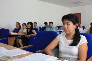 Участники обучающего курса разрабатывают действующий профиль риска во время практического мероприятия, Актобе, 27 июня 2017 г.