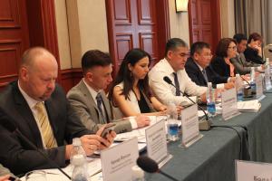 Федулов Александр (л), Глава программного офиса Управление Организации Объединенных Наций по наркотикам и преступности, Павел Халашнюк(ц-л), Глава программы Центра ОБСЕ по реформированию органов внутренних дел КР, Нерсесянц Анна (ц), и.о. главы Центра ОБСЕ в Бишкеке, Курсан Асанов(ц-п), заместитель министра внутренних дел, Шамшыбек Мамыров(ц-п), Национальный консультант Центра ОБСЕ в Бишкеке и Өмүрбекова Алтынай(п), Заместитель Торага Жогорку Кенеша Кыргызской Республики приняли участие в открытии Международной научно-практической конференции по вопросам реформы органов внутренних дел Кыргызстана, Бишкек, 22 сентября 2016.