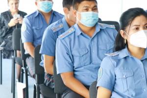 Более семидесяти представителей правоохранительных органов, НПО, трудовых инспекций, социальных служб и независимых экспертов со всего Кыргызстана принимают участие в Первых национальных имитационных учениях по борьбе с торговлей людьми, Иссык-Куль, Кыргызстан, 6 сентября 2021 года. (ОБСЕ/Ранат Рысбек)
