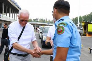 Участники учебного курса по профилированию после практических занятий, проведенных в Международном аэропорту Манас, Бишкек, Кыргызстан, 16 сентября 2021 года. (Ранат Рысбек/ОБСЕ)