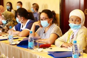 16 руководителей Женских инициативных групп из южных областей Кыргызстана принимают участие в трехдневном курсе по обучению инструкторов в Оше. 17 июня 2021 года. (ОБСЕ/Ранат Рысбек)