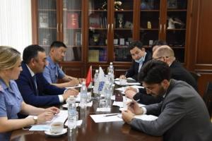 Министр внутренних дел Кыргызской Республики Улан Ниязбеков встретился с вновь назначенным главой Программного офиса ОБСЕ в Бишкеке Алексеем Роговым. Бишкек, 3 июня 2021 года. (Пресс-служба Министерства внутренних дел Кыргызской Республики)