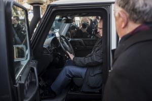 Глава СММ ОБСЕ в Украине посол Эртурул Апакан проверяет полученные автомобили Mercedes G-класса, которые раньше использовались Полицейской миссией ЕС в Афганистане, 3 февраля 2016 года.