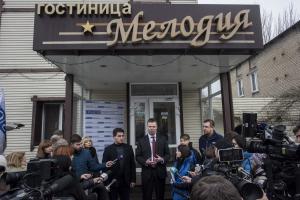 Первый заместитель Главы СММ ОБСЕ Александр Хуг встретился с командой СММ на открытии передовой патрульной базы СММ в Светлодарске, 14 января 2016 года.