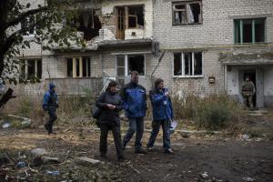 Наблюдатели СММ ОБСЕ посещают Дебальцево, 25 октября 2015 года.