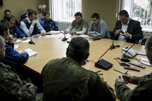 Заместитель Главы СММ ОБСЕ Александр Хуг во время встречи, посвященной содействию восстановления линий электропередач между городами Артемово и Горловка, 25 октября 2015 года.
