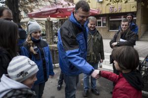 Заместитель Главы СММ ОБСЕ Александр Хуг общается с местными детьми в Дебальцево, 25 октября 2015 года.