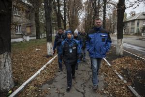 Наблюдатели СММ ОБСЕ посещают Горловку, 25 октября 2015 года.
