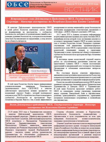 Бюллетень Центра ОБСЕ в Ашхабаде, август 2010