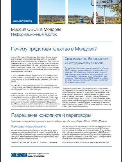 В 1993 году Совещание по Безопасности и Сотрудничеству в Европе (сейчас- ОБСЕ) учредило Миссию в Молдове для поддержки усилий по нахождению мирного решения данного конфликта.