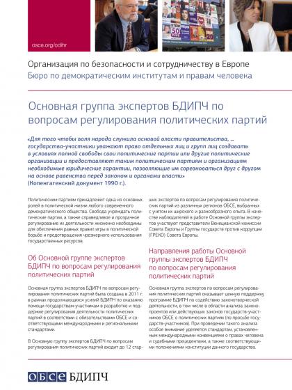 Основная группа экспертов БДИПЧ по вопросам регулирования политических партий