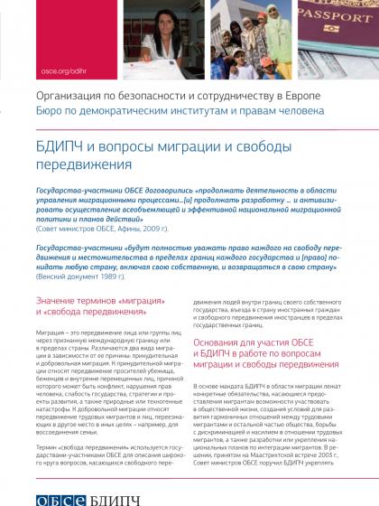 Информационный лист, в котором представлен обзор работы и роли ОБСЕ/БДИПЧ в оказании помощи государствам-участникам ОБСЕ по интеграции мигрантов, управлению трудовой миграцией и устранению препятствий свободе передвижения.