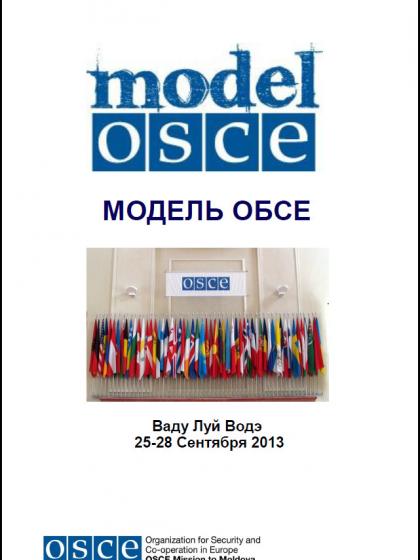 Брошюра "Модель ОБСЕ в Молдове " содержит информацию об имитационной игре Модель ОБСЕ, которая состоится в конце Сентября 2013, а также про то кто и как может принимать участие.