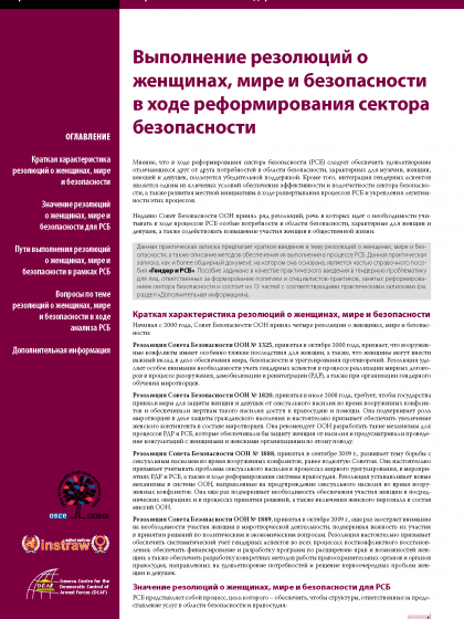 Данная практическая записка предлагает краткое введение в тему резолюций о женщинах, мире и безопасности, а также описание методов обеспечения их выполнения в процессе РСБ.