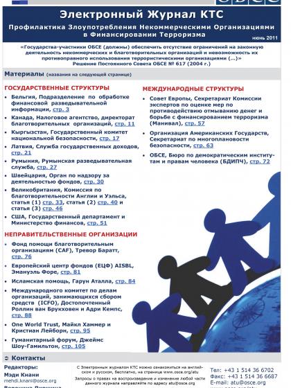 Electronic Journal of the OSCE Counter Terrorism Network (CTN) Newsletter, issue focused on Preventing the Abuse of Non-Profit Organizations for Terrorist Financing