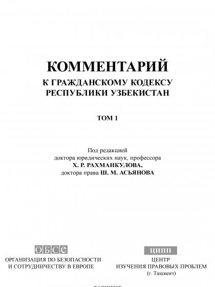 Комментарий к гражданскому кодексу Республики Узбекистан, том 1