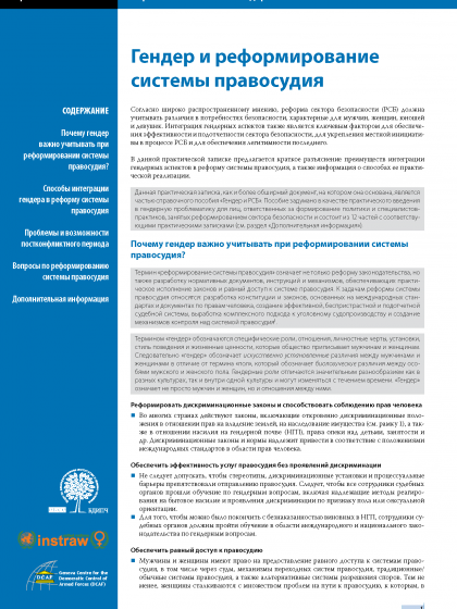 В данной практической записке предлагается краткое разъяснение преимуществ интеграции гендерных аспектов в реформу системы правосудия, а также информация о способах ее практической реализации.