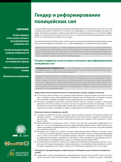 В данной практической записке предлагается краткое разъяснение преимуществ интеграции гендерных аспектов в реформу полицейских сил, а также информация о ее практической реализации.