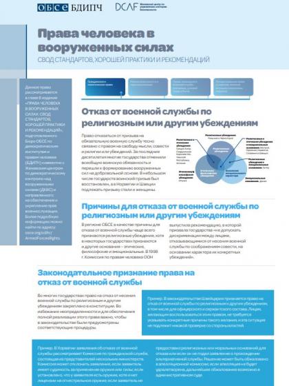 Права человека в вооруженных силах: Свод стандартов, хорошей практики и рекоммендаций- Отказ от военной службы по религиозным или другим убеждениям