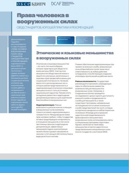 Права человека в вооруженных силаx: Свод стандартов, хорошей практики и рекоммендаций- Этнические и языковые меньшинства в вооруженных силах