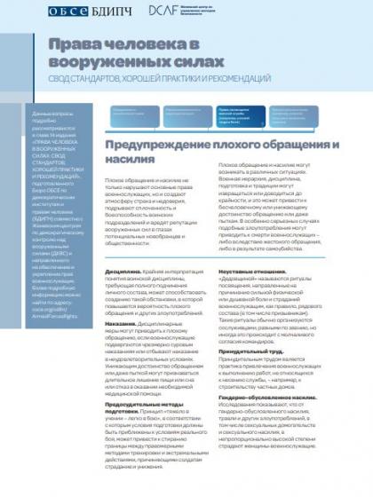 Права человека в вооруженных силаx: Свод стандартов, хорошей практики и рекоммендаций- Предупреждение плохого обращения и насилия