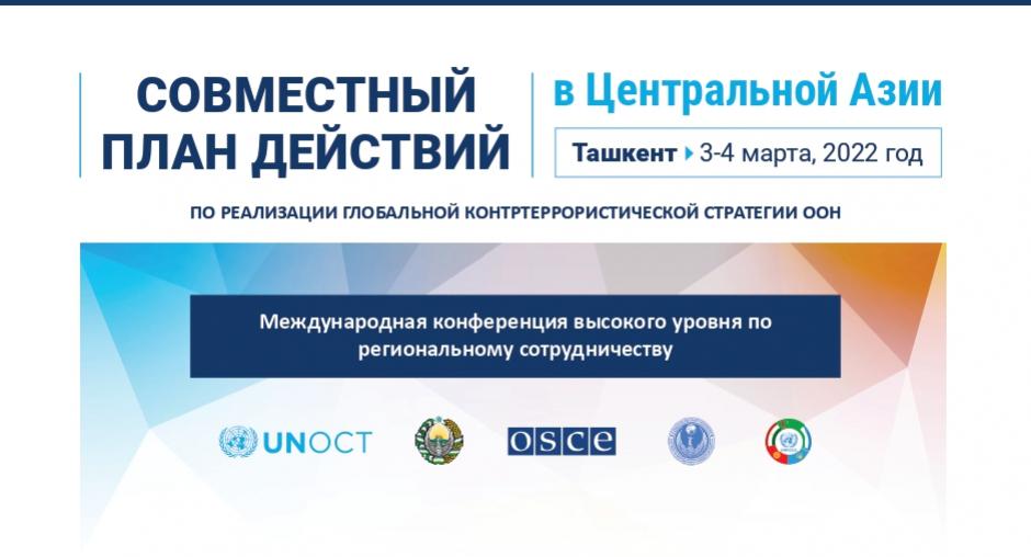 Ташкент/Нью-Йорк/Вена, 28 февраля 2022 г. - 3-4 марта 2022 года в Ташкенте состоится Международная конференция высокого уровня на тему: «Региональное сотрудничество стран Центральной Азии в рамках Совместного плана действий по реализации Глобальной контртеррористической стратегии ООН».