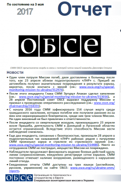В отчете представлен обзор работы Специальной Мониторинговой Миссии ОБСЕ (СММ), последние события и новости по состоянию на 03 мая 2017 года.