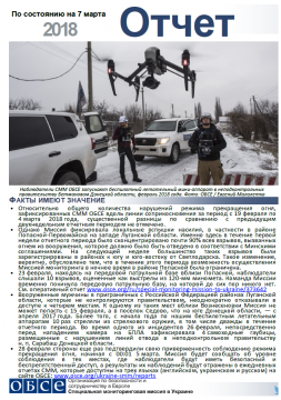 В отчете представлен обзор работы Специальной мониторинговой миссии ОБСЕ (СММ), последние события и новости по состоянию на 7 марта 2018 года.